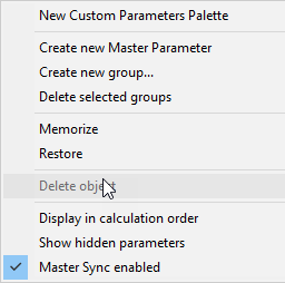 - Create New Master Parameter: Creates a new parameter dial that can be set up to drive one or more dependent parameter dials. For further information on dependent parameters, see Using Dependent Parameters.