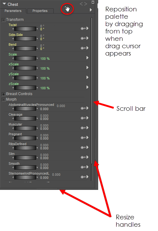 Moving, Repositioning, and Resizing Palettes