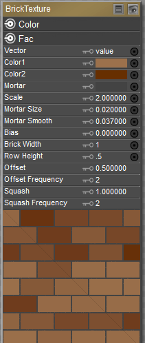 - Bias: The color variation between the brick colors. Values of -1 and 1 only use one of the two colors; values in between mix the colors.
