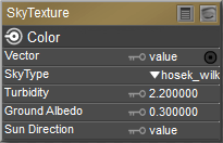 - Sun Direction: The sun direction vector. Enter three values in X, Y, and Z positions respectively.