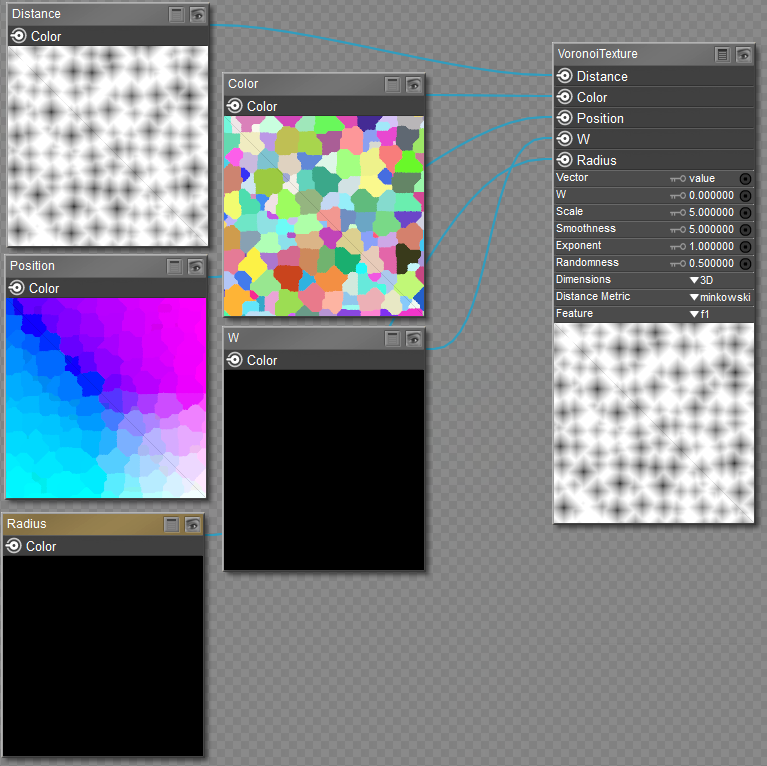 - Detail: Number of noise octaves. The fractional part of the input is multiplied by the magnitude of the highest octave. Higher number of octaves corresponds to a higher render time.
