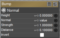 - Distance: Multiplier for the height value to control the overall distance for bump mapping