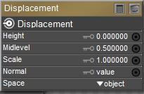 - Midlevel: Neutral displacement value that causes no displacement. With the default 0.0, any lower values will cause the surfaces to be pushed inwards, and any higher values will push them outwards.