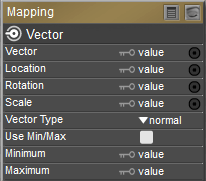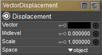 - Vector: Vector specifying the displacement along three axes. This is where a texture node can be connected.