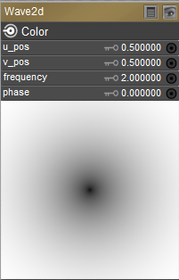 The Wave2D node implements a two-dimensional sin / cos trigonometric function, resulting in a two-dimensional wave effect.