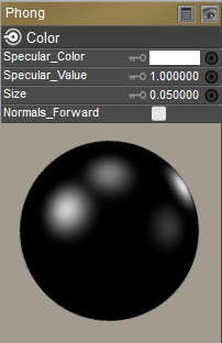 The Specular node defines a model for calculating highlights. It has the same attributes as the Phong node, which is discussed below.