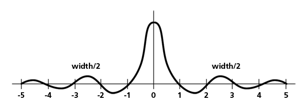 - Sinc: A Sinc filter uses a decreasing sine wave calculation to assign weight to samples within a radius roughly half the pixel filter size. The sine wave effect is similar to ripples radiating from the center point, where samples will be given weight according to their relative positions with regards to the “crests” and “troughs” of the ripples.