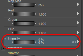 - Use the Parameters palette to set the intensity of your current light to 0% (off). Then do the same for the other two lights. At a Master Parameter setting of -1, the lights in your scene will be completely off.